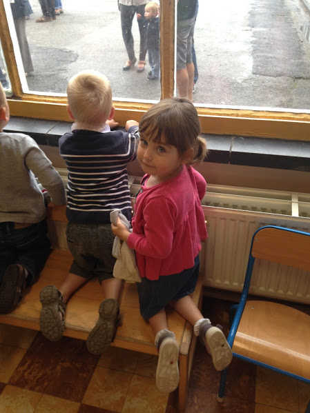 Arrivée dans la grande cour, retrouvailles avec sa cousine, ses copains, sa Madame Stéphanie. Yeux écarquillés, démarche franche, sourire aux lèvres. Regard attentif et main qui ne lâche pas celle de Papa. Et puis une grosse envie de câlin avec Papa avant d’entrer en classe. Un besoin d’être rassurée avant de faire le grand saut.