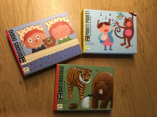 Il y a des grands classiques, bien sûr, comme le jeu du verger. Mais ce qu’elle aime par-dessus tout, c’est de pouvoir emporter facilement ses jeux au gré de ses envies. Et comme les vacances s’annoncent, j’avais envie de partager avec vous ses 3 jeux préférés du moment, qui sont composés uniquement de cartes. Par définition, ils ne prennent pas de place, et peuvent donc être facilement glissés dans la valise ou dans le sac à dos !