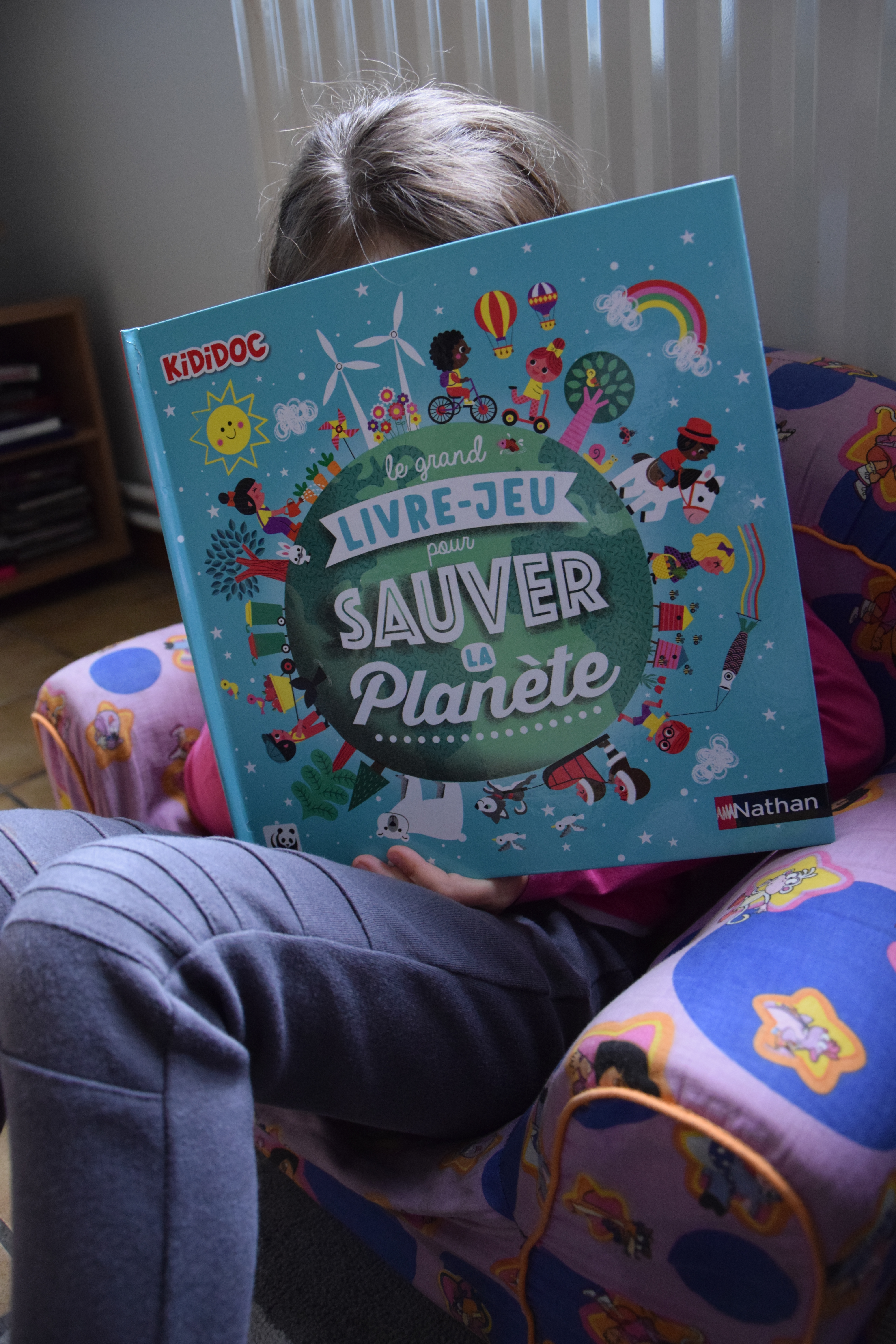 Pour son anniversaire, la grande a récemment reçu un grand Kididoc, de la collection des livres-jeux : « Le grand livre-jeu pour sauver la planète« . Le thème de toute l’année à l’école est justement « good planet« , donc ça tombait bien. Elle a tout de suite adoré le livre, indépendamment du jeu (que nous n’avons pas encore eu le temps de tester d’ailleurs). Elle y retrouve des concepts qu’elle connaît (manger de saison, trier les déchets, faire un compost…) abordés de façon ludique et parfaite pour satisfaire sa curiosité. Les traditionnels « Vrai ou faux » sont là aussi, en plus d’autres « jeux » comme les « cherche et trouve » ou des « questions-réponses ». Bref, une super découverte à nouveau.