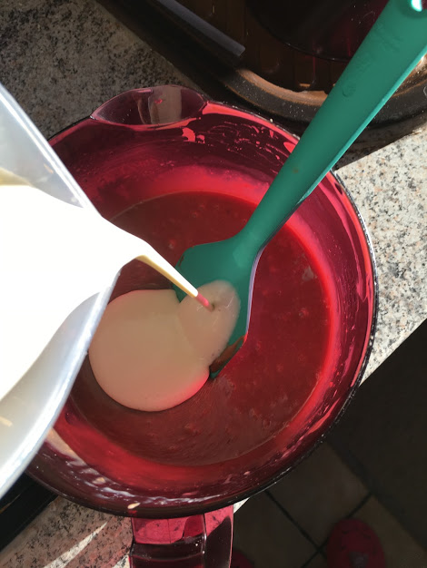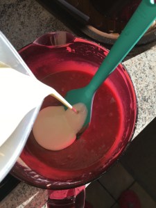 - Ajouter les 30 cl de crème froide et bien mélanger pour obtenir une couleur homogène.
