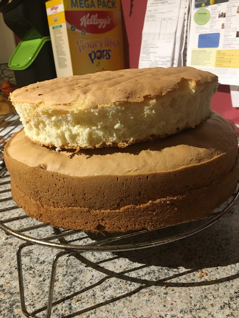 J’ai donc répété l’opération pour la deuxième génoise, que je coupe ensuite à l’aide d’un cercle plus resserré.